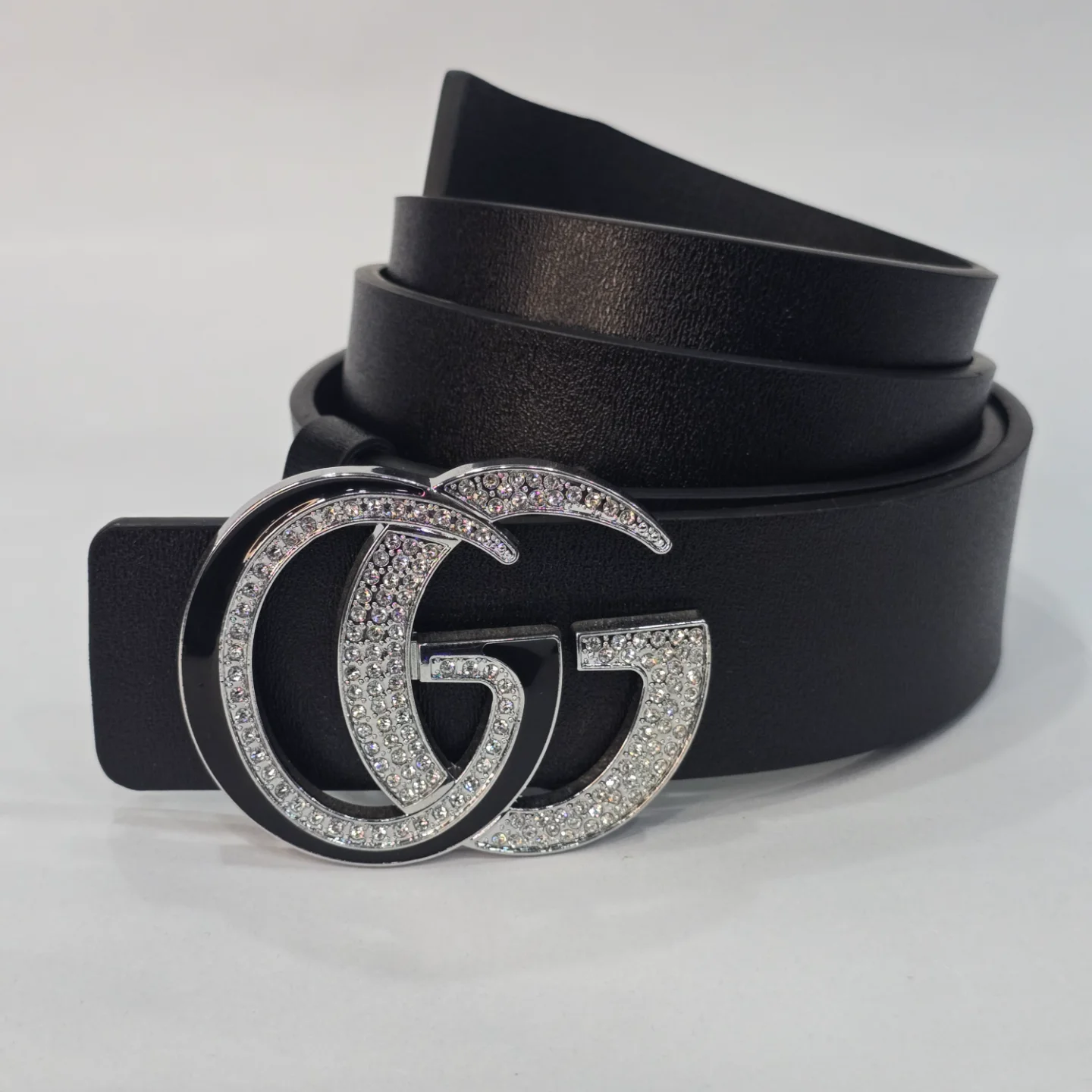 "This premium-quality Gucci-inspired ice belt is crafted with top-grade materials and features a stylish, eye-catching design. Made in China, it boasts superior leather construction and exquisite iced-out detailing, delivering both durability and luxury. Perfect for those who appreciate standout fashion and high-end accessories."